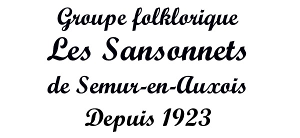 Le groupe folklorique existe depuis 1923 Les Sansonnets sont heureux de vous accueillir sur leur site pour vous faire découvrir les traditions du pays d'Auxois (nous prononçons "Aussois"). Joyeux drilles, nous portons partout le sourire et la joie de vivre de l'Auxois.Nous sommes des amateurs qui chantons et dansons en arborant des costumes parfois centenaires et pouvons vous dévoiler des dessous d'époque..... Nous rythmons nos danses en claquant du sabot. Les Sansonnets vous feront découvrir les villages de l'Auxois au travers de leurs chants et de leurs danses qui rappellent le quotidien, les fêtes et les cérémonies de la fin du 19 ème siècle. Le groupe est membre de la Fédération Grande Bourgogne, de la Confédération Nationale des groupes folkloriques Français depuis 1935, ce qui implique le port de costumes authentiques et la présentation de chants et de danses typiques de leur "Pays". |